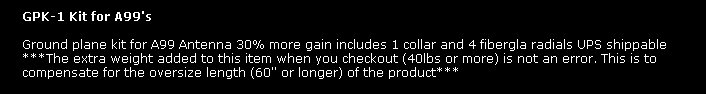 GPK-1 Groundplane Kit PRICE $ 40.00